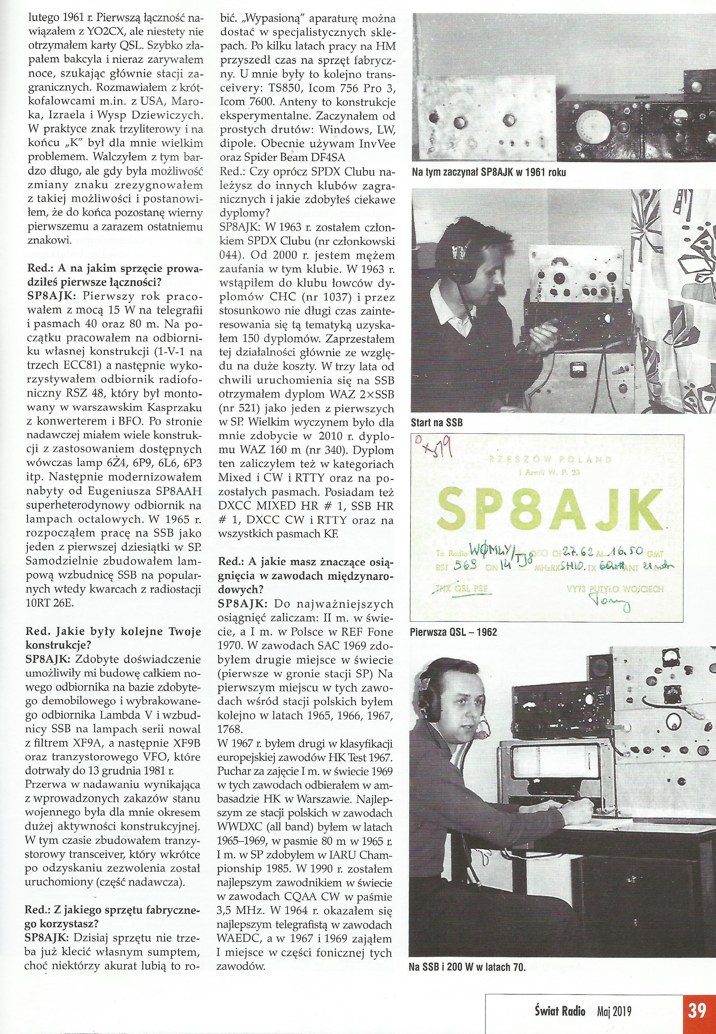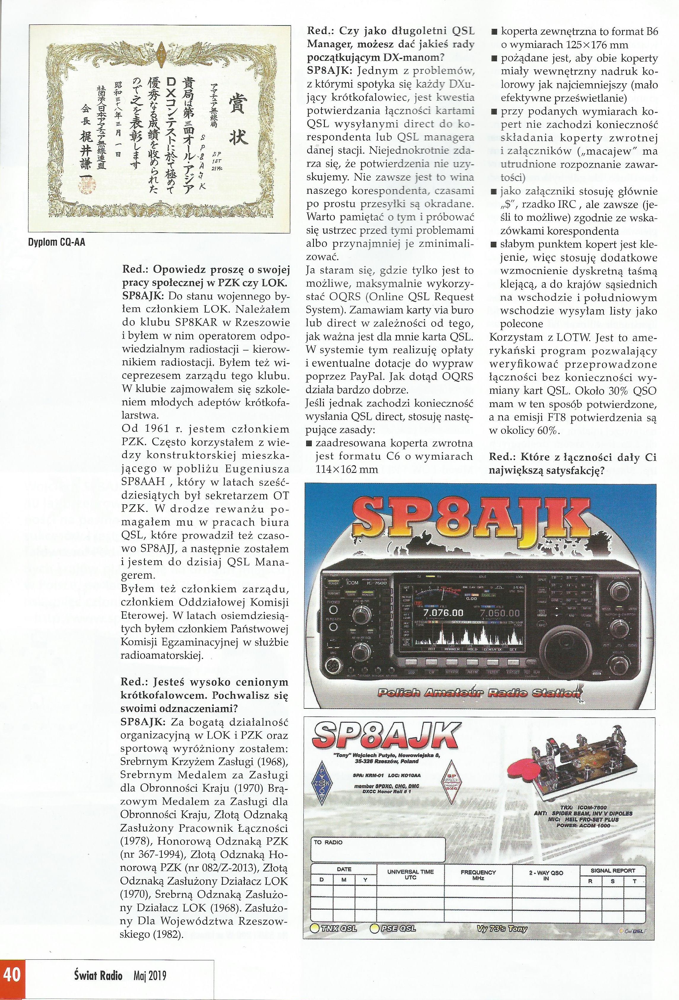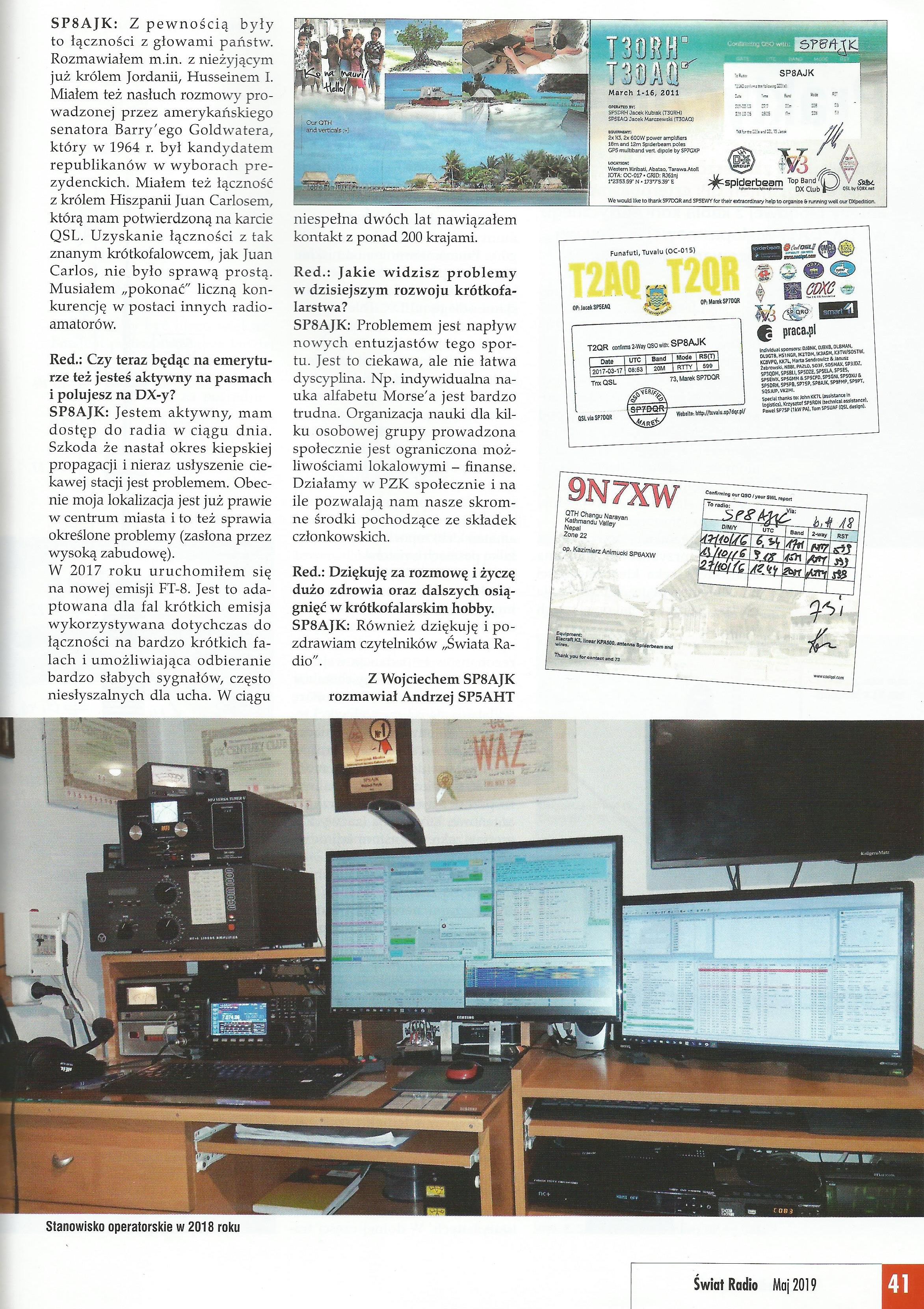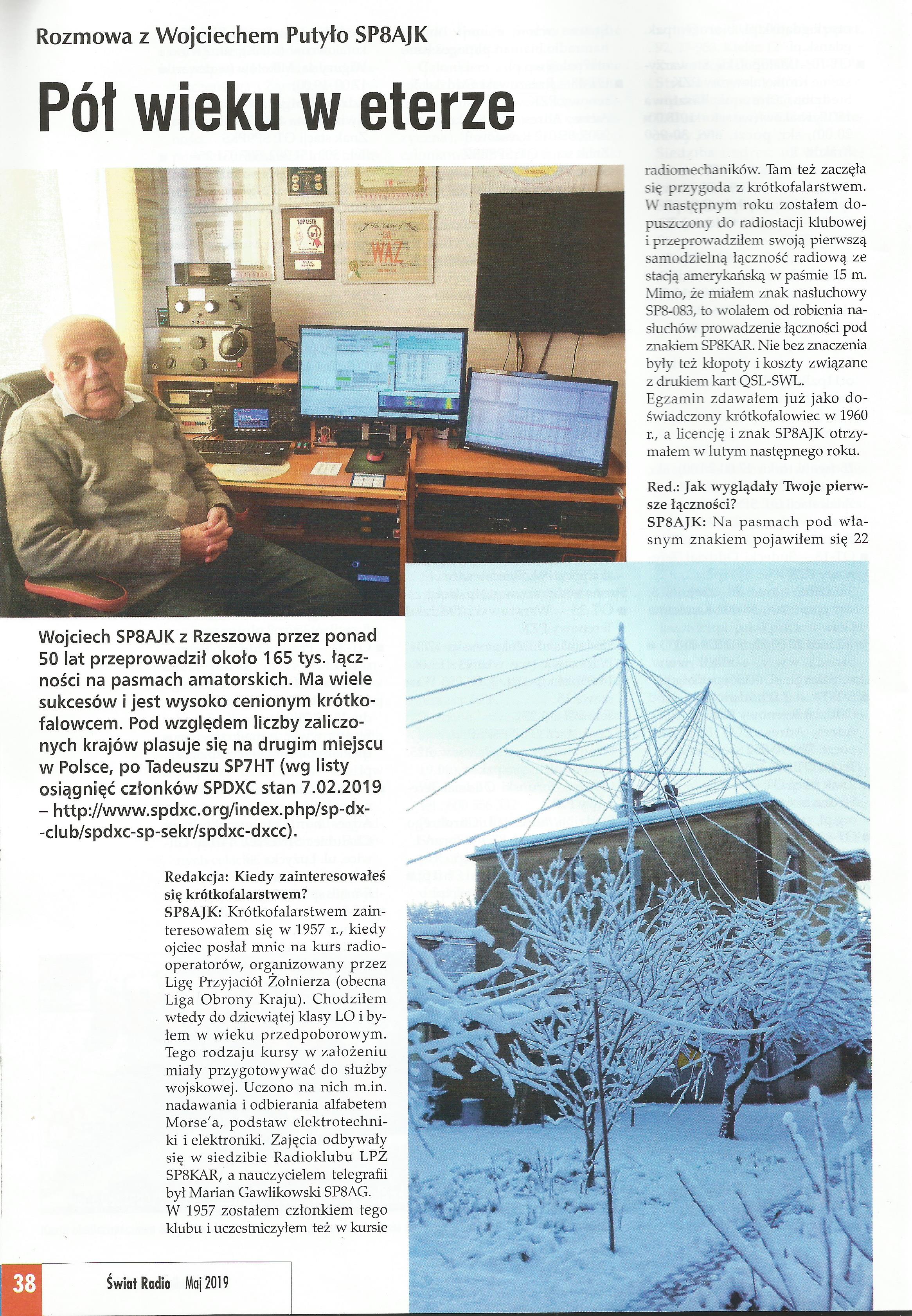 Rozmowa z Wojciechem Putyło SP8AJK (QSL Manager 18 OT PZK w Rzeszowie), która ukazała się na łamach miesięcznika „Świat Radio” – maj 2019.